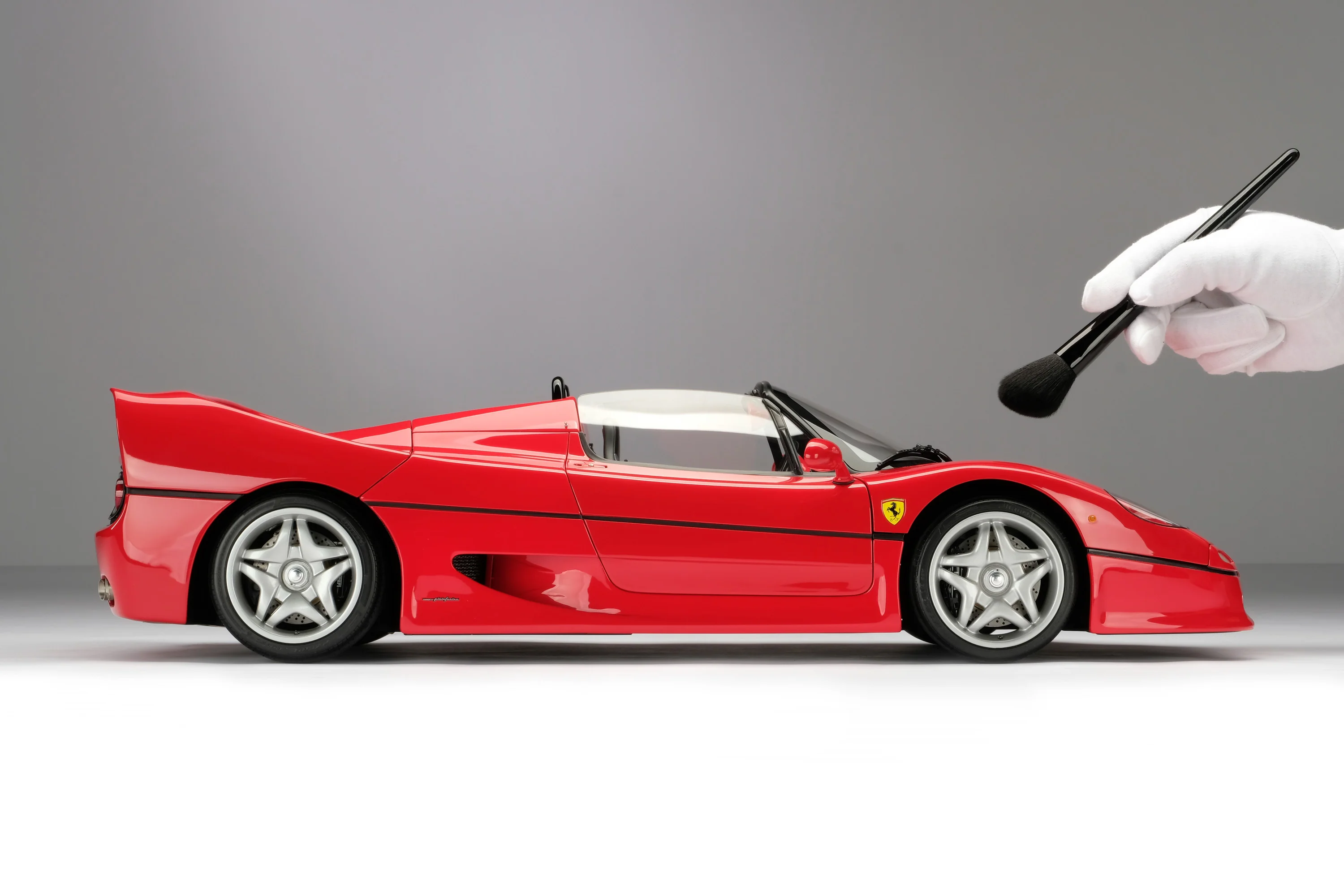 The European specification model edition is a perfect replica of the car as unveiled to celebrate Ferrari's 50th anniversary in 1995, whilst the US specification edition incorporates all the additional elements of the cars sold specifically in the United States. Bespoke models can be commissioned for owners of the real car. These fine 1:8 scale models of the Ferrari F50 have been handcrafted and finished in our workshops using CAD directly provided by Ferrari allowing us to perfectly recreate every detail at scale. Finally, the prototype model has undergone detailed scrutiny by Ferrari’s engineering and design teams to ensure complete accuracy of representation.