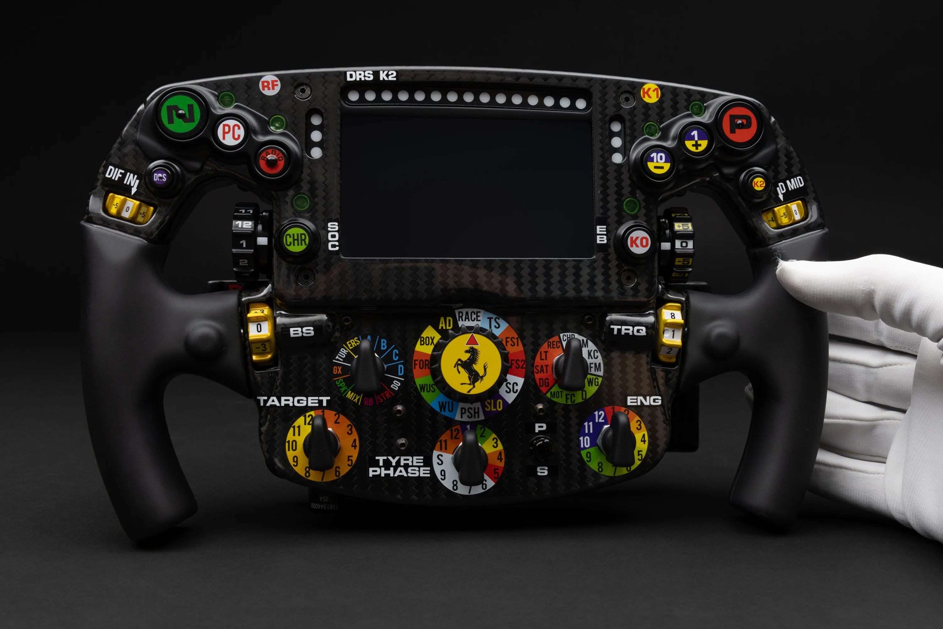 This fine full-size replica of the Ferrari SF-25 Steering Wheel, as used during the 2025 FIA Formula One World Championship season by Charles Leclerc and Lewis Hamilton, is handcrafted and finished in our workshops with the co-operation and assistance of Scuderia Ferrari regarding original CAD data, finishes and paint codes. Furthermore, each replica undergoes detailed scrutiny by both engineering and design teams to ensure complete accuracy of representation.