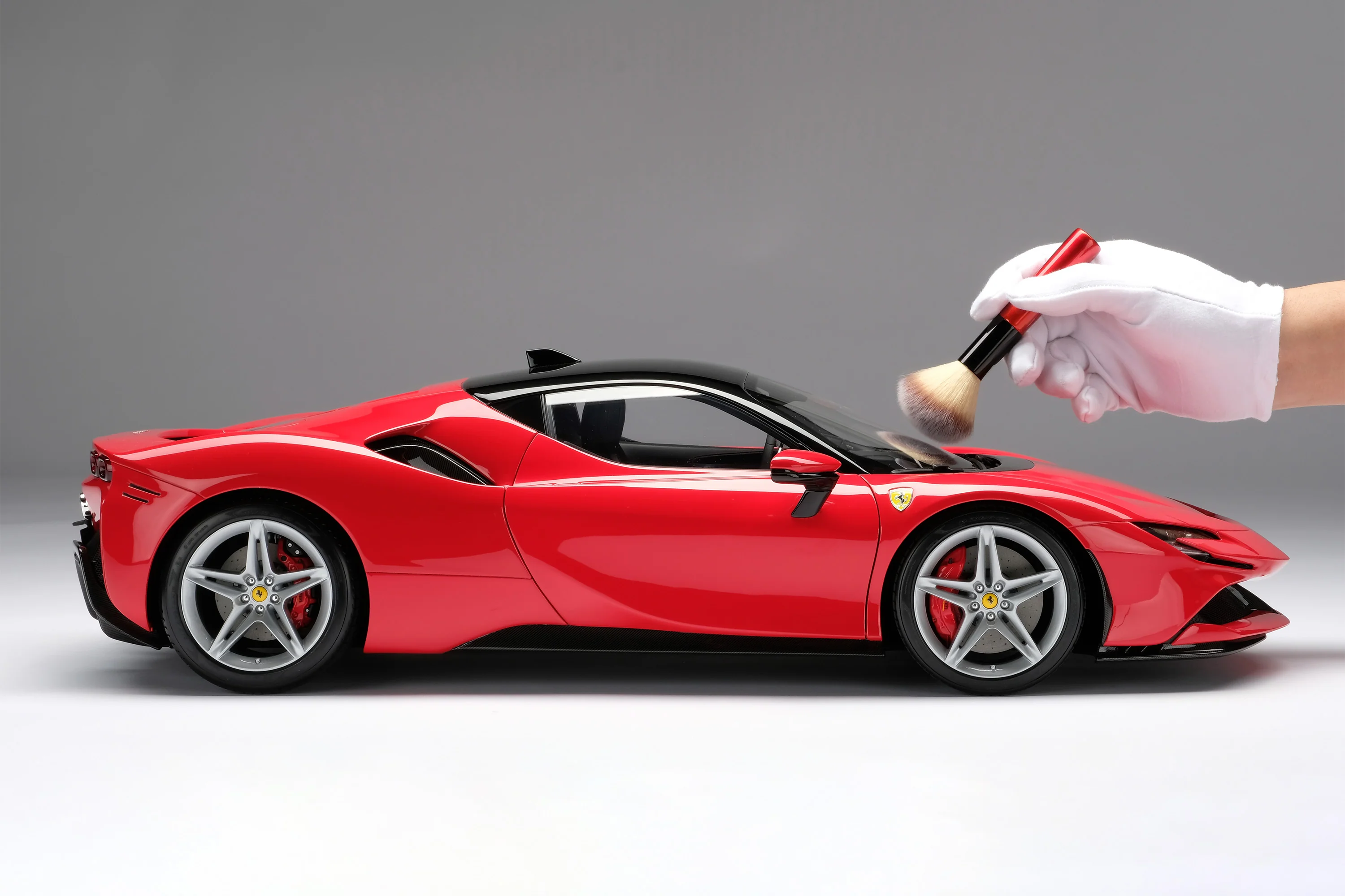 This fine 1:8 scale model of the Ferrari SF90 Stradale has been handcrafted and finished in our workshops with the co-operation and assistance of Ferrari regarding original finishes, materials, archive imagery and drawings. The use of supremely accurate digital scanning of the original car has allowed us to perfectly recreate every detail at scale. Furthermore, it has undergone detailed scrutiny by both engineering and design teams to ensure complete accuracy of representation.