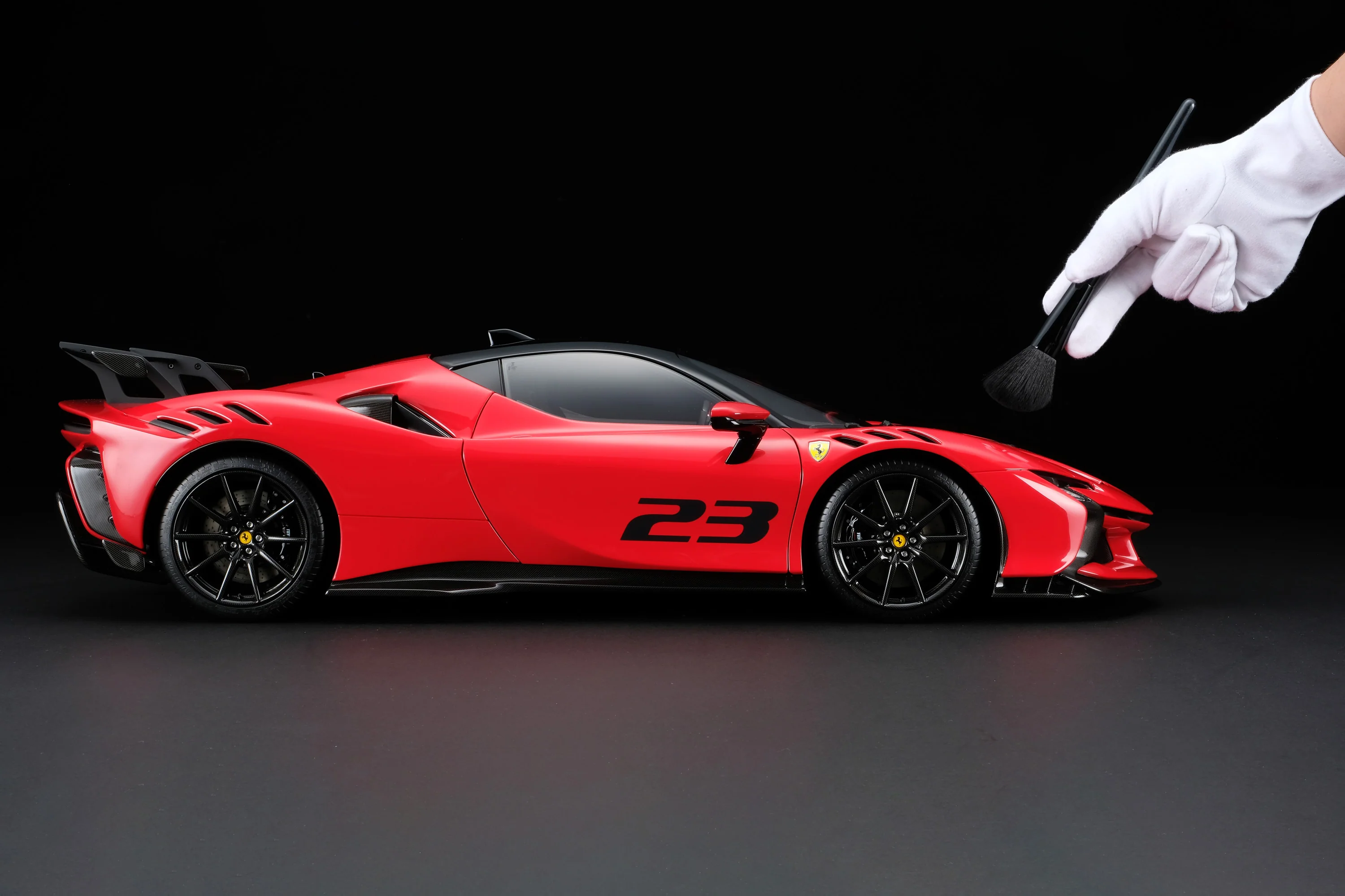 This fine 1:8 scale model of the Ferrari SF90 XX Stradale has been handcrafted and finished in our workshops with the co-operation and assistance of Ferrari regarding original finishes, materials, archive imagery and drawings. The use of supremely accurate digital scanning of the original car has allowed us to perfectly recreate every detail at scale. Furthermore, it has undergone detailed scrutiny by both engineering and design teams to ensure complete accuracy of representation.