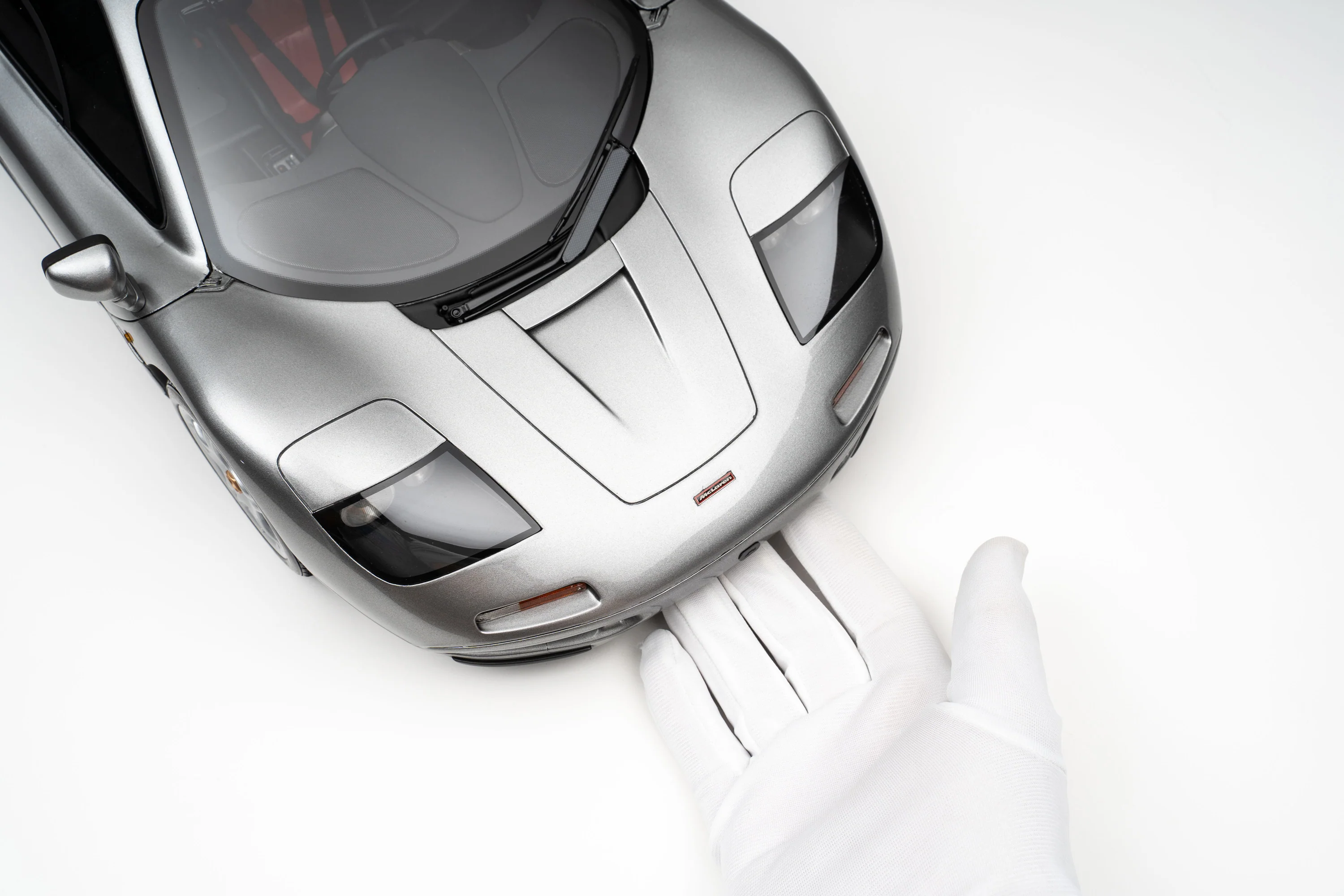 This fine 1:8 scale model of the McLaren F1 is available in dark metallic green or finished in silver, complete with a black interior, as first unveiled to the world at The Sporting Club in Monaco in May 1992, during the Monaco Grand Prix. It has been handcrafted and assembled in our workshops using detailed colour and material specifications supplied directly from McLaren Automotive, and our own CAD data created through digital scanning of an original car. Furthermore, it has undergone detailed scrutiny by both engineering and design teams to ensure complete accuracy of representation. Every Amalgam 1:8 scale model is supplied in a luxury black presentation box and mounted on a carbon fibre or leather base protected by a clear acrylic dust cover. The model title, original branding and edition number are displayed on polished stainless-steel plaques mounted at the front end of the base.